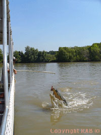 From there turn right and the jumping crocodile cruise is located on their private stretch of the Adelaide River at the end of Fogg Dam Road. All in all it was about 75 minutes since you leave Darwin. I then followed to the right on a dirt track form some 5klm to Harry Bowmans - Adelaide River Crocodile cruise. So we received a special once off private tour. Last we heard it was $43 for a adult and $16 for a child with 4 cruises a day and the boat capivity is 30 folks. Cruise times are 9am, 11am, 1pm, 3pm Daily from May to November